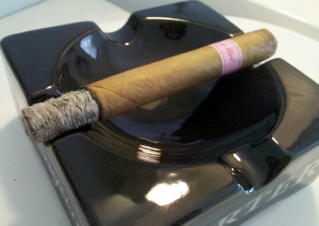The "It's a Girl" cigars and their sibling, "It's a Boy," are among the most-knocked-off cigars in the USA today; fitting as one gets these cigars due to someone being knocked-up. Changing fashions and laws and health awareness have reduced overall demand, but the reduced demand has had the effect of improving the quality of the cigar. Unfortunately, it is not easy to tell if one is smoking the real thing or a knock-off. The plain pink band with its cursive font make reproduction trivial. Garcia Y Vega, Rocky Patel, Ashton, Davidoff, Baccarat. Cusano, Bering and Fuente are among the better-known brands that produce a knock-off. Some add a second band, e.g., Rocky Patel puts his ego band on his knock-off. Others use subtle variations of the original band. Yet others eschew tobacco altogether, using cigars made of chocolate, bubble bum, or soap(!) to celebrate the birth of a daughter. To each their own.