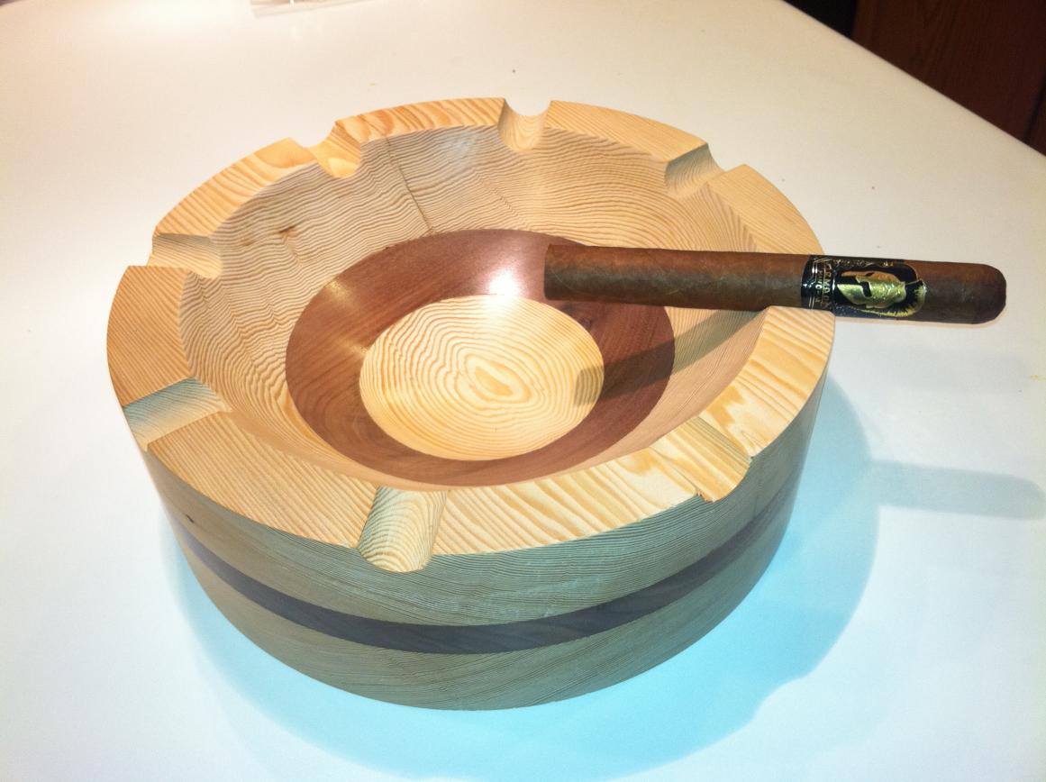 I recently saw that there were very few ashtrays that were proportional to the size of a cigar. So I decided to make a large ashtray and see how it looked. This ashtray is made from some douglas fur and walnut I had laying around, which ended up looking very nice. The dimensions of the tray are 3.5" tall with an 11" diameter. The reason for this post is just to see what you guys think of them, and if you think there is any market for this product.