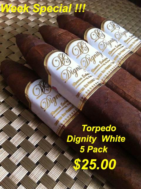 Dignity White Label: A rich medium body, spicy aroma and a sweet tangy pop of caramelized flavor nicely accented with a light note of spice perfect for a summer evening. This unique cigar is composed of tobacco all from the same plant and aged over 3-years
