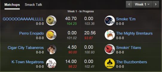 Oh, buzz, it's not fear my friend, just a desire to repeat as champ....and superior knowledge of the game. OR maybe I just compare my positions projected scores for week 1 against all available players and adjust from there. :smiley2: