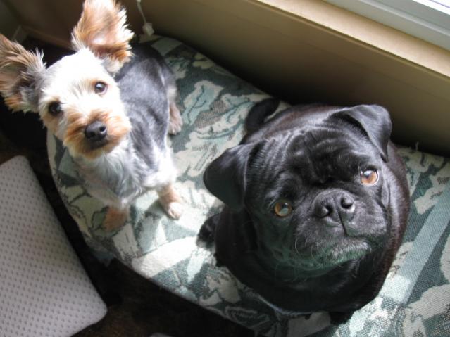 Let's bring this one back again! These are our dogs, Barkley's on the right and Rosie's on the left. Both from different shelters, Barkley is a German Shorthair mix and Rosie seems to be a mix of a lot of different fluffy breeds(and shes more like a thorn than a rose IMO)