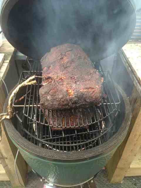 Got them in there on the 1st hour on the rack, just rub. Next hour will be in pans with some brown sugarwater, last hour has the "oh yeah" sauce on it.