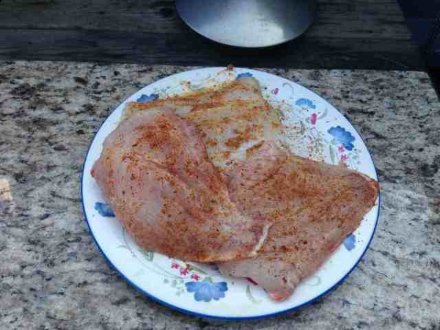 So, I'm doing a 3 hour smoke with chicken thighs. Prepped them by cutting off excess skin / fat. Poked the hell outta them with a fork, and applied all purpose rub. Let sit. Made salad, veggie tray, swiss chard / kale rabe. That's all done.