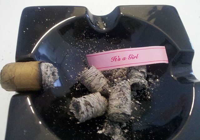 The "It's a Girl" cigars and their sibling, "It's a Boy," are among the most-knocked-off cigars in the USA today; fitting as one gets these cigars due to someone being knocked-up. Changing fashions and laws and health awareness have reduced overall demand, but the reduced demand has had the effect of improving the quality of the cigar. Unfortunately, it is not easy to tell if one is smoking the real thing or a knock-off. The plain pink band with its cursive font make reproduction trivial. Garcia Y Vega, Rocky Patel, Ashton, Davidoff, Baccarat. Cusano, Bering and Fuente are among the better-known brands that produce a knock-off. Some add a second band, e.g., Rocky Patel puts his ego band on his knock-off. Others use subtle variations of the original band. Yet others eschew tobacco altogether, using cigars made of chocolate, bubble bum, or soap(!) to celebrate the birth of a daughter. To each their own.
