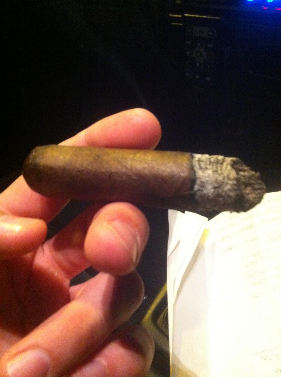 The bitterness has come back, still though the sweet aftertaste makes it neutral, if not pleasant. There is a bit of spicyness, but that seems to always happen on the ass end of the stick. I'm very relaxed at this point, I usually only have about one cigar a week, so this one really hit the spot. I definitely would recommend having a nice cold glass or 3 of guiness with this cigar, the sweet undertones would go really well with it.