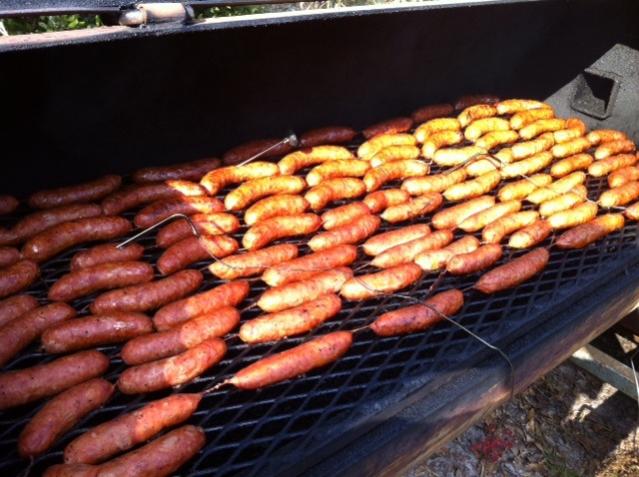 My youngest has pigs and we slaughtered one a few weeks ago. Today was sausage making day. We do everything our self from birth to slaughter. This is not the first time we spent all day making sausage but for some reason or another it felt like the longest. So here it is 150Lbs of sweet sweet Hampshire sausage. Well at least the first 25Lbs on the smoker.