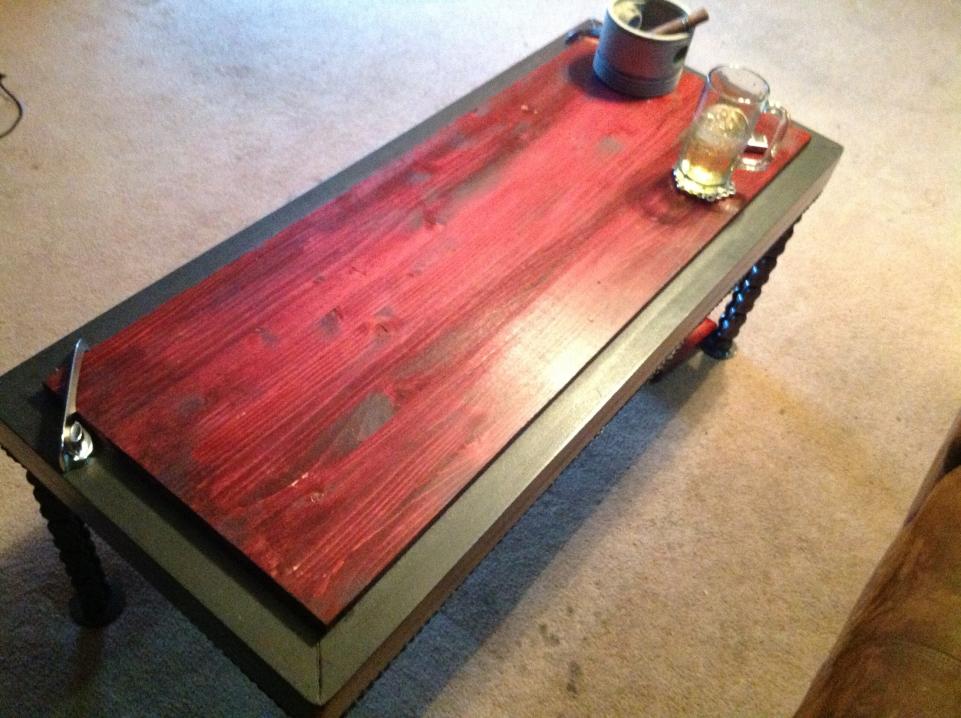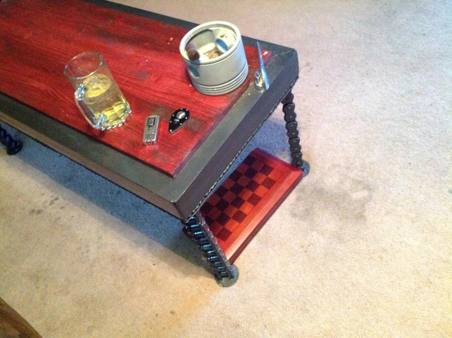 I get compliments all the time on the coffee table. It's just some steel from a old cellphone tower and a drive chain from the elevator. I built it a few years back for my man cave.