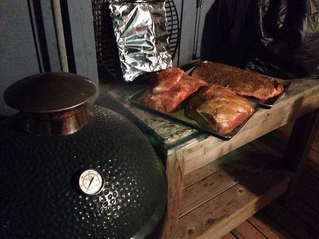 Having my crew over for a party tomorrow. 20lb pork shoulder and a 9lb brisket going on @ 11:30pm. Low and slow at 230deg