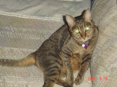 My ex-wife has "custody"of all of our cats, one is almost all grey and looks a lot like yours. She's 17 1/2 years old now and so is her sister. There are two other cats, a purebred British Short Hair (all black, ten years old on May 1st) and a purebred Maine Coon (all white, nine years old on January 12th). The Maine Coon actually looks quite a bit like my avatar photo but her eyes aren't as dark. I'll see if I can get some digital photos sometime......