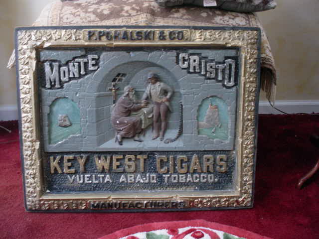 Key west sign, monte carlo cigars, plaster and wood, vintage make offercall 518-877-5509 or micro0711@yahoo.com