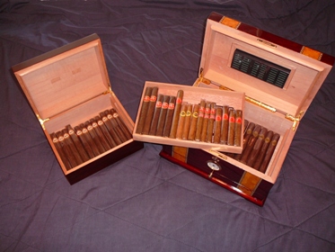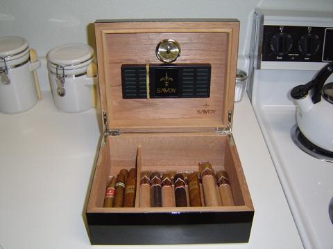 First off...Very Nice Humidor... Also Dig The Zak figure!!! One thing I noticed, you may want to mount your Hydrometer on your lid or place it somewhere inside where air can pass into and out of it. But if your leveals are cool , then forget what I just said. Just thought I would give my input... Good luck on building that collection.![]()