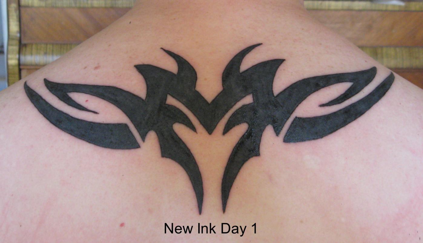 This started as just the center portion. It was a medalion from an old girlfriend representing the trinity of mind, body & soul. I like the sentiment though don't miss the girlfriend The rest was an addition drawn by a good friend by request. I asked for something more around the outside and he delivered. It wraps around both side of my shoulder and onto my chest but I don't seem to have pics of the rest at the moment.