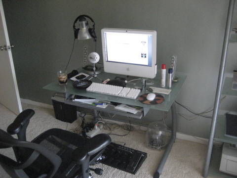Here's mine. Not normally so messy, but I am in the middle of finals mode right now. And the LCD is coming after Christmas.
