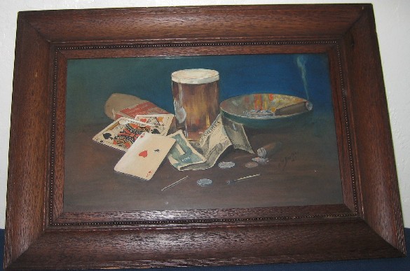 There are two paintings - one with cigars and one is an original watercolor of a place not far from where the lady grew up. As best I can tell, the artists name is William Bertkau. Maybe someone out there has heard of him or can correct me on the name.